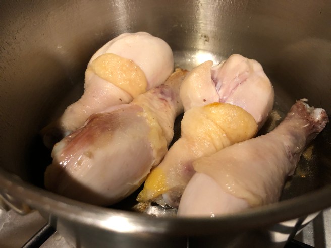 Step 1: Heat the pan (I prefer pot) first, and in the meanwhile, use a paper towel to wipe extra moisture off the drumsticks.